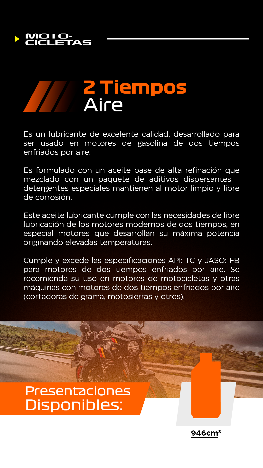 Aceite lubricante para motores 2 tiempos enfriados por aire.