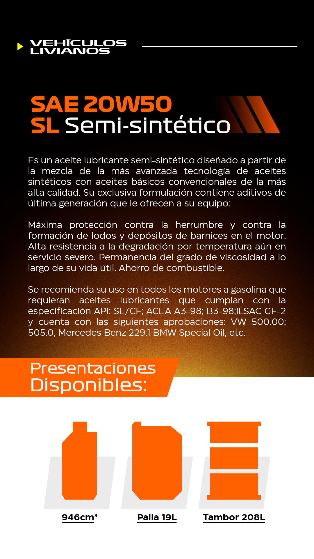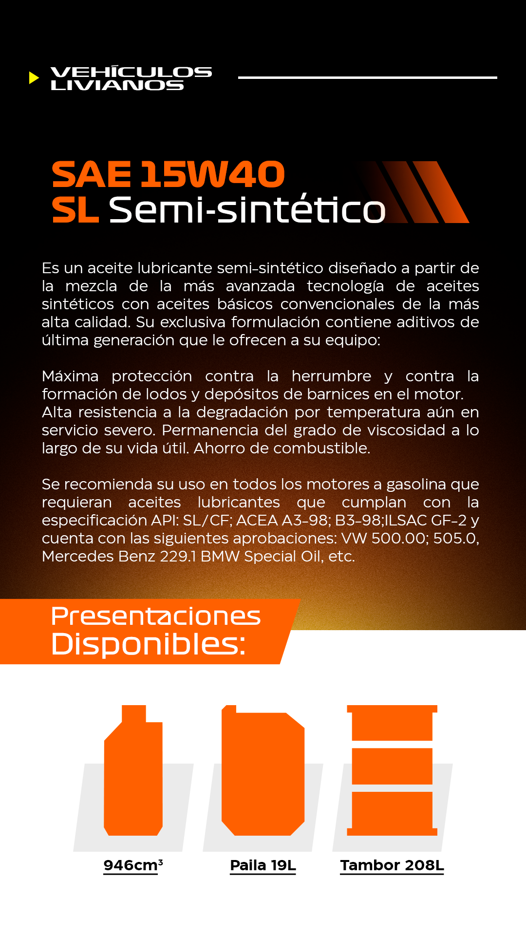 Aceite multigrado semi-sintetico para motores a gasolina.